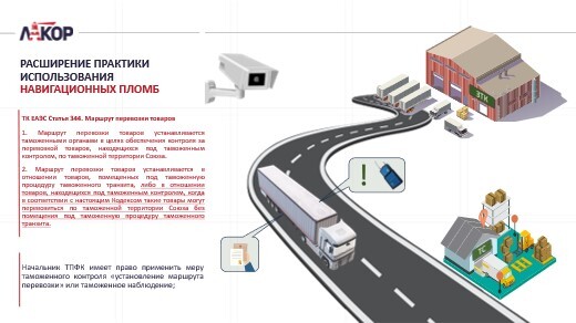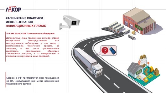Иными словами маршрут может быть установлен при транзите, а может и после выпуска некоторых таможенных процедур. Например, при заявлении процедуры «Таможенный склад». Товар ведь остается под таможенным контролем. И начальник ТПФК вправе применить меру таможенного контроля «установление маршрута перевозки» либо классическое «таможенное наблюдение. И здесь тоже навигационная пломба может быть высокотехнологичным решением, не требующим участия должностных лиц.